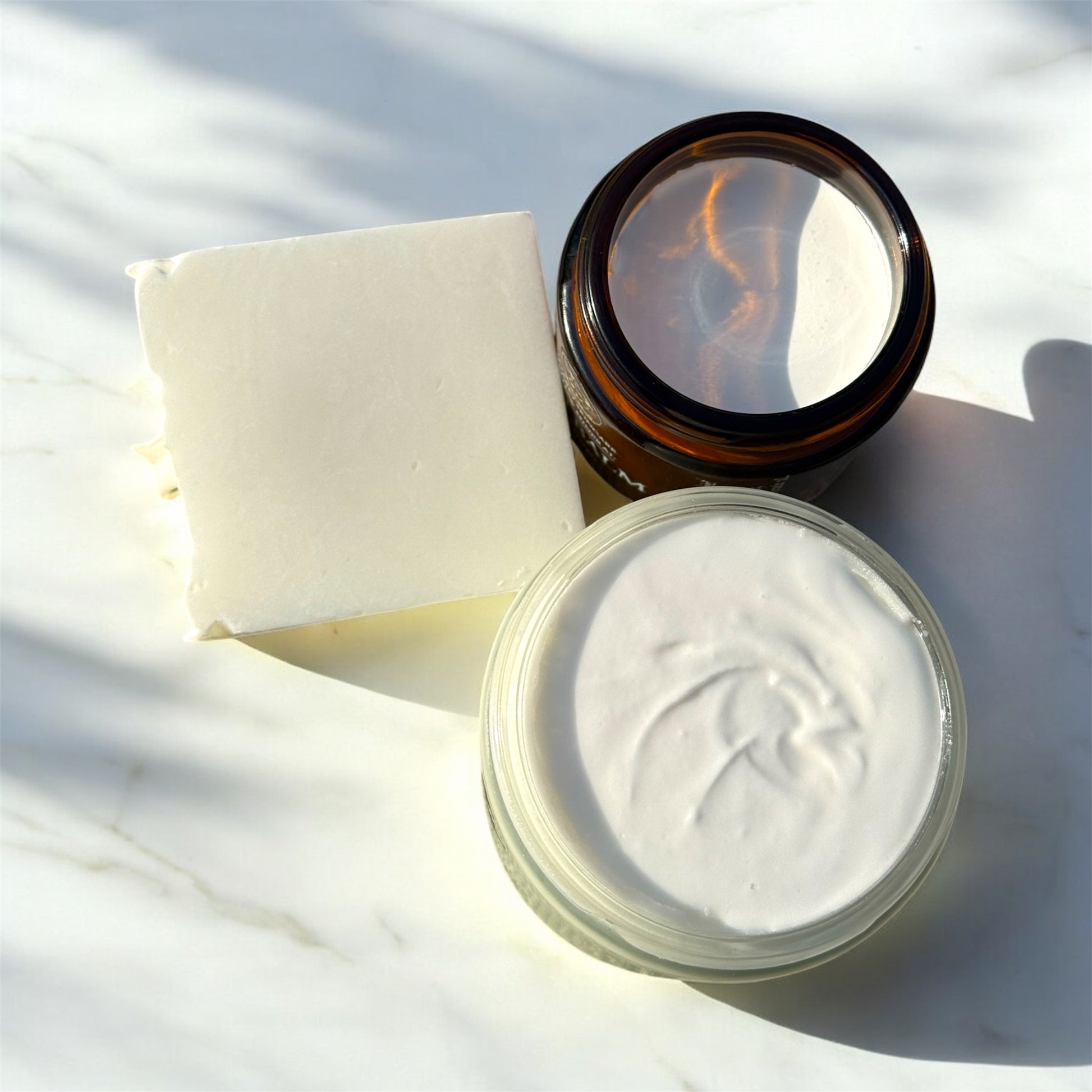 Whipped Body Butter (8 oz): Lightly whipped grass-fed tallow + avocado oil melts on contact to restore and soften.