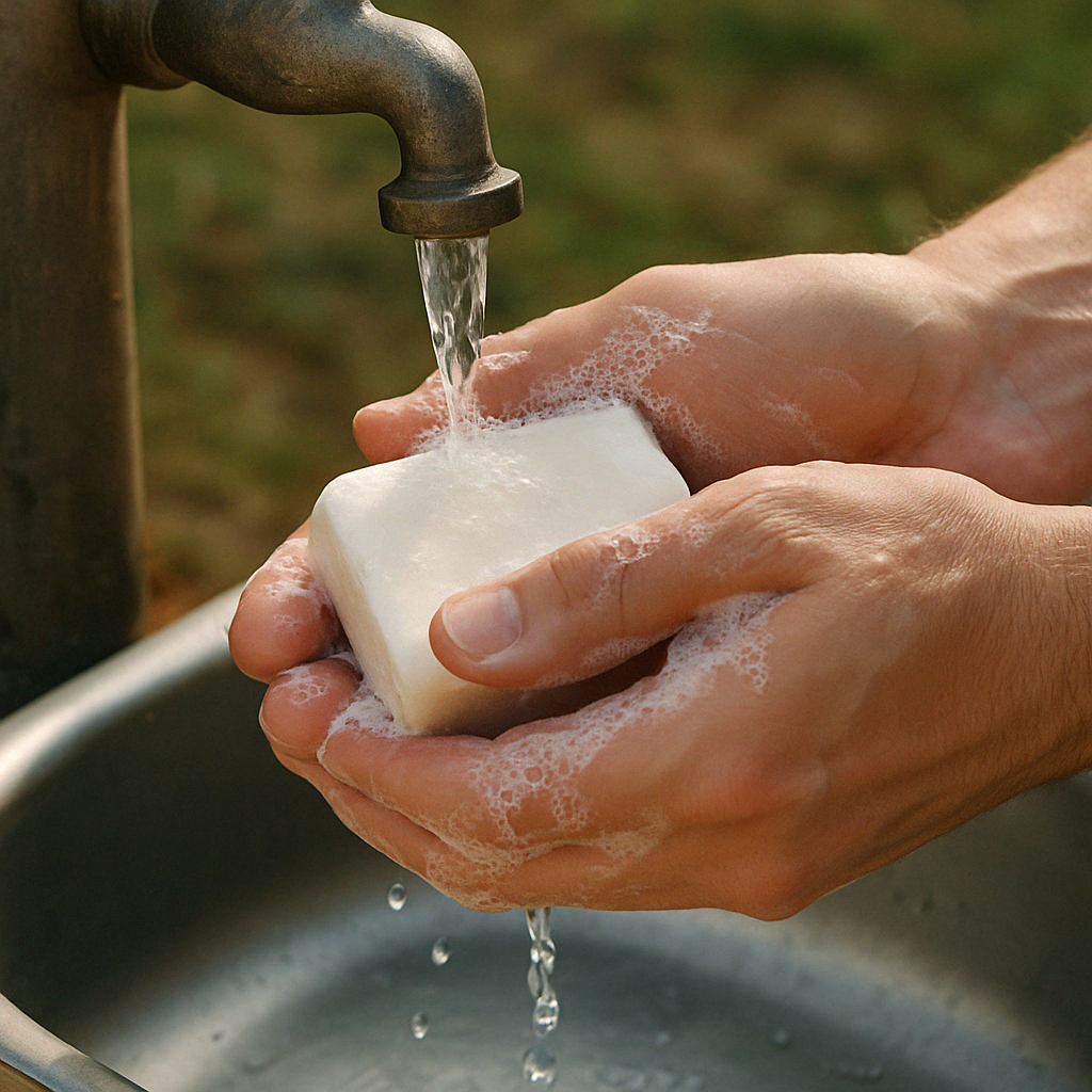 Each bar is poured in small batches and naturally scented with essential oils like lavender, cedarwood, or sweet orange for a subtle, grounding aroma. The result is a firm, long-lasting bar with a creamy lather and an earthy elegance.